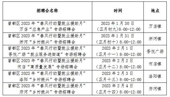 曾都区人社局举办2023年“春风行动暨就业援助月”专项服务活动。现将有关事项通知如下: