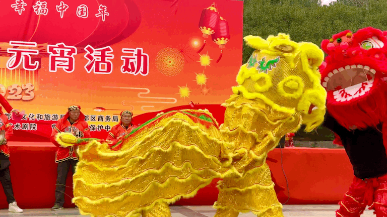 舞狮队上下腾挪灵活自如,左转右跳生动活泼,憨态可掬的可爱,身手不凡的矫健;鹬蚌相争、采莲船、喜庆腰鼓等原汁原味的民俗表演引来掌声阵阵;现场分享传统美食、猜灯谜等互动环节活跃了现场氛围。