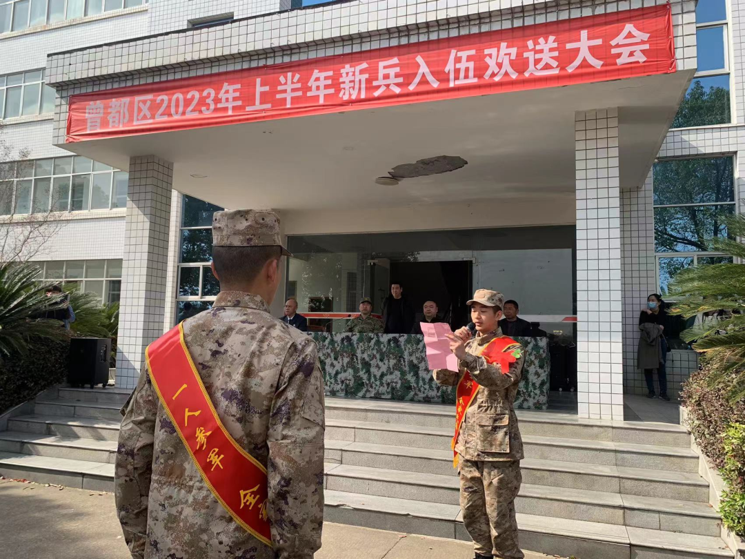 3月15日,曾都区人武部和区退役军人事务局在南郊新训基地联合举办2023年度上半年新兵入伍欢送大会。