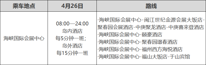 4月27日,为保障参会嘉宾按时参加开幕式及主论坛,将安排各指定酒店至会场的定点往返班车。