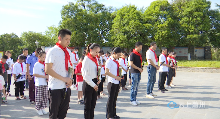 在随州革命烈士陵园,参加活动的少先队员和志愿者在缅怀革命先烈中拉开这次喜迎党的二十大——“赓续红色基因•传承清廉文明家风”青少年家庭志愿服务活动的序幕,大家集体默哀,为革命烈士敬献鲜花,瞻仰革命烈士纪念碑,打扫烈士公墓、擦拭烈士碑文,参观陈列馆。