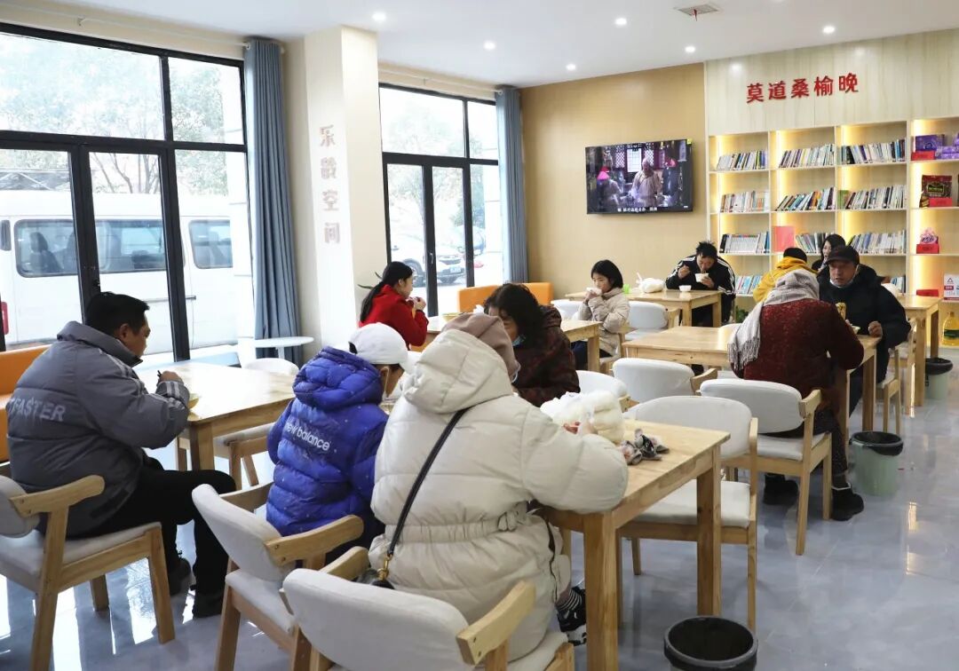 在幸福食堂一旁,有图书角、老年人和残疾人康复设施等,社区居民吃完饭还可在此休憩、锻炼。
