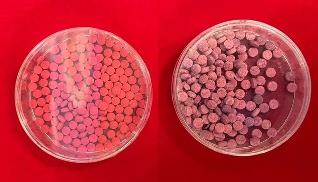 麻古的外观多为圆形、药片状,黄连素药片大小,与摇头丸相似,通常呈玫瑰红、橘红、苹果绿等色,添加色素香料呈不同颜色和香味,上面印有“R”“WY”“66”“888”等标记。