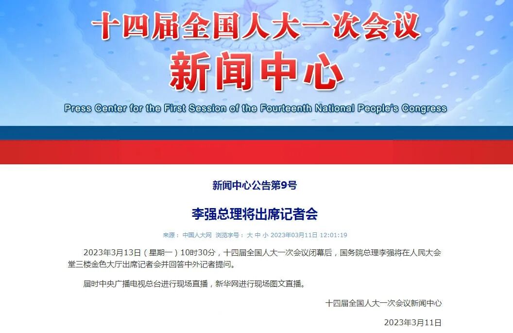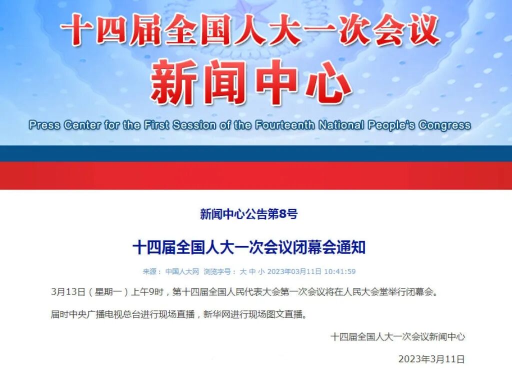 今天上午9时,十四届全国人大一次会议将在人民大会堂举行闭幕会。上午10时30分,人大会议闭幕会后,国务院总理李强将在人民大会堂三楼金色大厅出席记者会并回答中外记者提问。人民日报视频号、人民日报客户端将带来直播,共同关注!