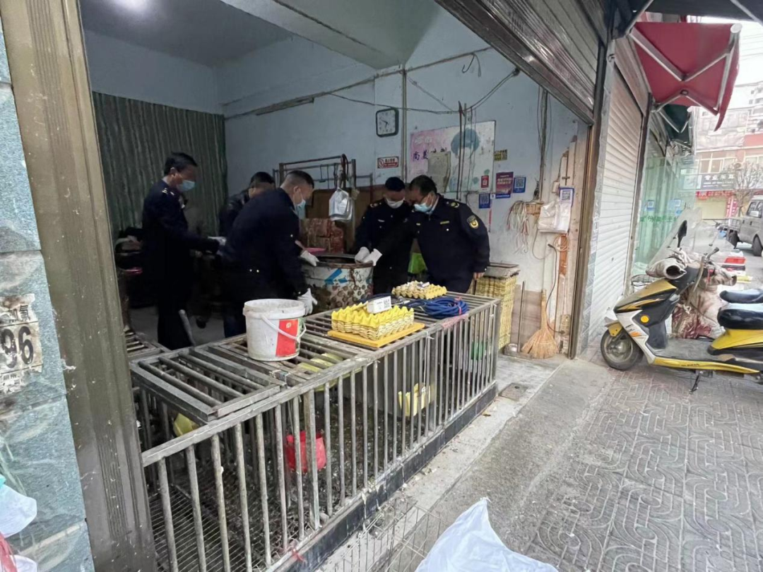 “你好老板,麻烦配合下我们的工作,现在中心城区禁止活禽交易和屠宰,你们的脱毛机不能在店使用了……”3月15日清晨,东城街道联合区农业农村局、东城综合执法中心、东城市场监管所、东城农服中心、东城派出所及东兴社区,对香江市场内4处活禽交易点进行联合执法行动。