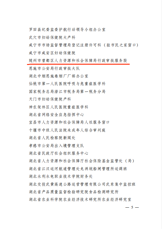 曾都区人力资源和社会保障局行政审批服务股的娘子军们深耕本职,精准服务,热心公益。她们用女性独有的柔情、细心、耐力,坚守人社前沿窗口,用“23℃人社服务”让每位办事群众乘兴而来、满意而归;在全省率先试点推行“职业中介开办一件事”,持续推进群众办件便利化;深入推进“高效办成一件事”改革,打造行政审批新场景,让企业、群众“少跑腿”“快办事”;踊跃参加扶贫帮困、结对助学等活动,“一灯一桌椅,点亮书香梦圆梦微心愿”给困境儿童以物质关心和情感关爱,尽显巾帼奉献。