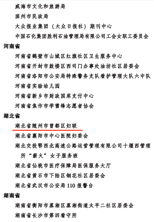 近年来,曾都区妇联在区委、区政府的坚强领导和省市妇联的大力支持下,坚持围绕中心,服务大局,发挥优势,主动作为,带领全区各级妇联组织积极履行引领妇女、联系妇女、服务妇女和维护妇女儿童合法权益的工作职责,积极发挥桥梁纽带作用。在全市率先成立区级妇女儿童服务中心。开展“百千万巾帼大宣讲”“强国复兴有我”“巾帼微讲堂”等各类活动近百场次,团结引领全区广大妇女坚定不移听党话、跟党走。深入开展家庭教育楚天行,寻找最美家庭、评选平安家庭、健康家庭、最美庭院等活动。成立曾都区家庭教育指导中心,创建市级家风家教实践基地,推动清廉家风建设,开展“家庭家教家风”主题展示活动百余场,以良好家风,促进良好社会风尚。颁布实施2021—2030年曾都区妇女儿童发展规划,筑牢妇女儿童权益保障的制度根基。全力推进“两癌”免费筛查,争取各级“两癌”救助资金120余万元。开展“爱心妈妈”一对一结对帮扶留守儿童,大力推进“春蕾计划”“彩虹行动”“圆梦微心愿”“女童安全自护”等关爱行动,为全区留守妇女、困境妇女购买安康保险,助力妇女儿童发展。先后获评全国三八红旗集体、湖北省妇联系统先进集体、湖北省三八红旗集体。