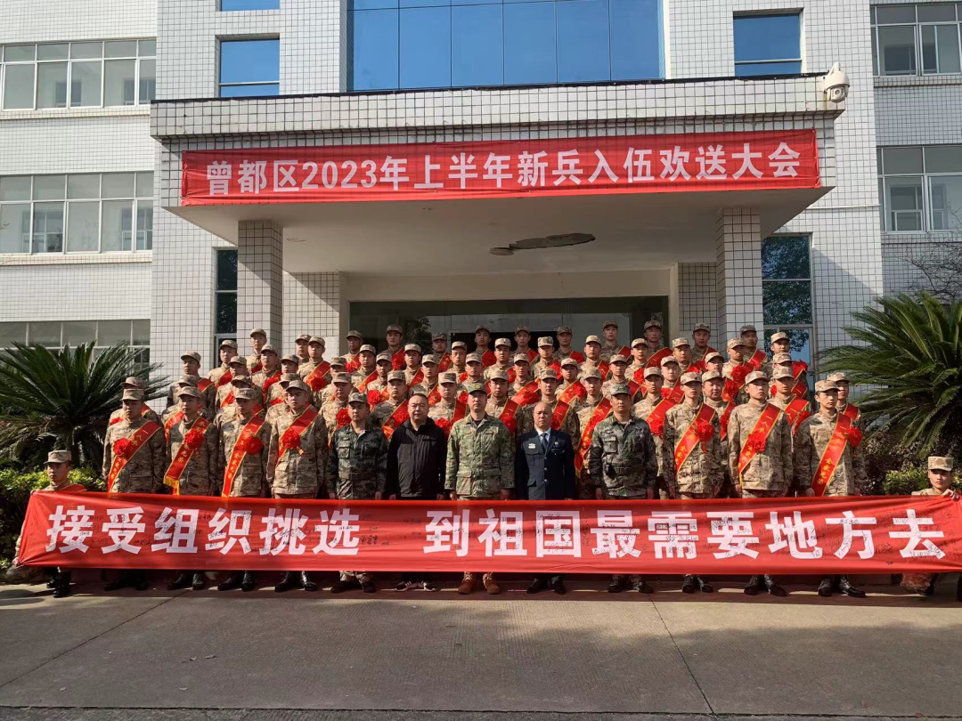 3月15日,曾都区人武部和区退役军人事务局在南郊新训基地联合举办2023年度上半年新兵入伍欢送大会。