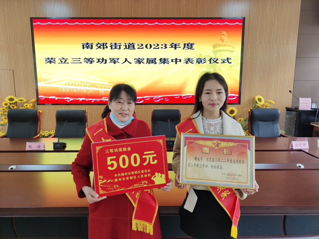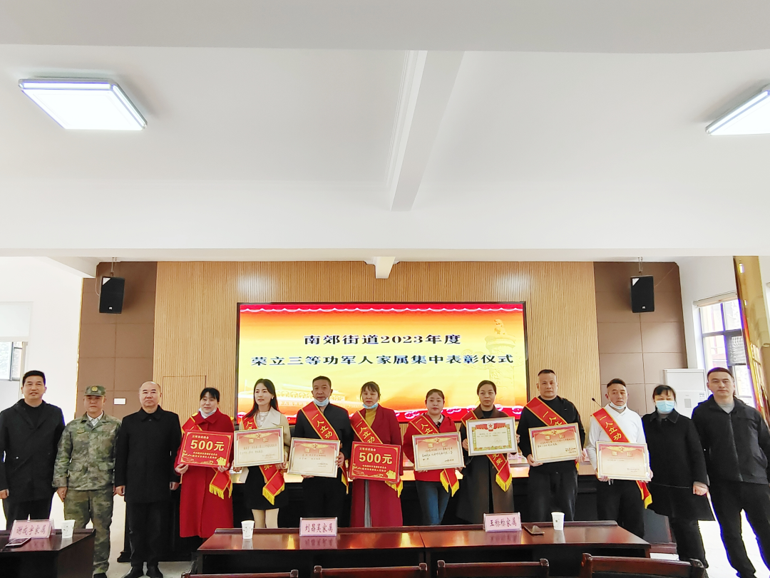 3月29日上午,区退役军人事务局、区人武部联合南郊街道组成拥军优属慰问组,为6名荣立三等功的现役军人家属举行集中表彰仪式。