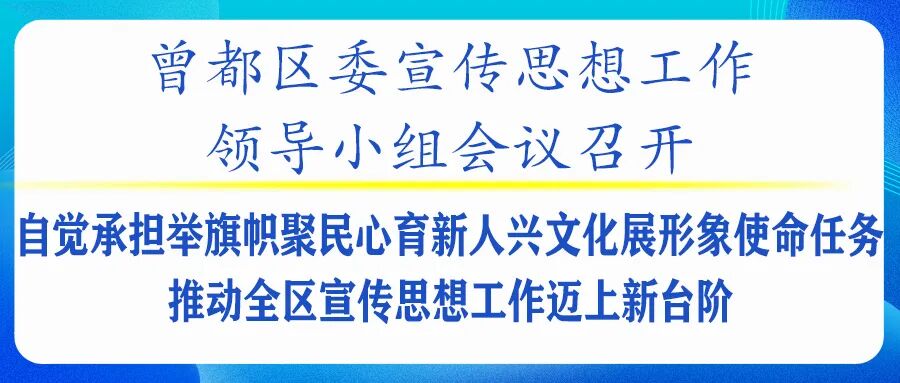 4月3日,区委书记、区委宣传思想工作领导小组组长姜皓主持召开区委宣传思想工作领导小组会议。他强调,要聚焦学习宣传贯彻党的二十大精神工作主线,围绕区委中心工作,更好承担举旗帜、聚民心、育新人、兴文化、展形象使命任务,持续营造“干在实处,走在前列”的浓厚氛围,努力多出精品力作,讲好曾都故事,传播曾都正能量。
