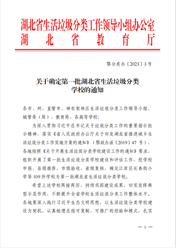 首批湖北省生活垃圾分类学校