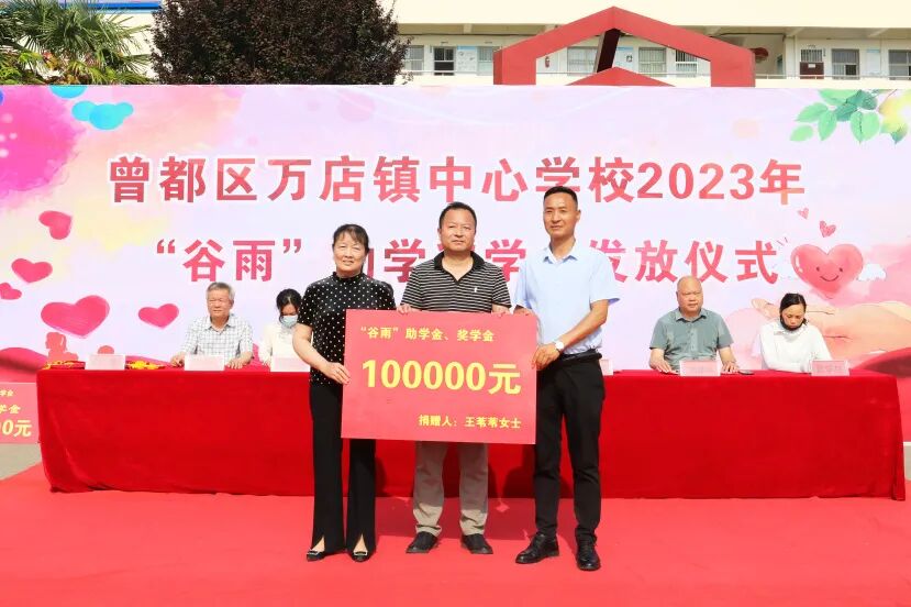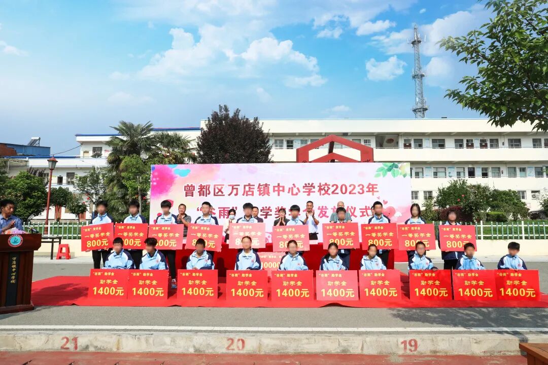4月20日,万店镇中心学校2023年“谷雨”助学奖学金发放仪式举行。