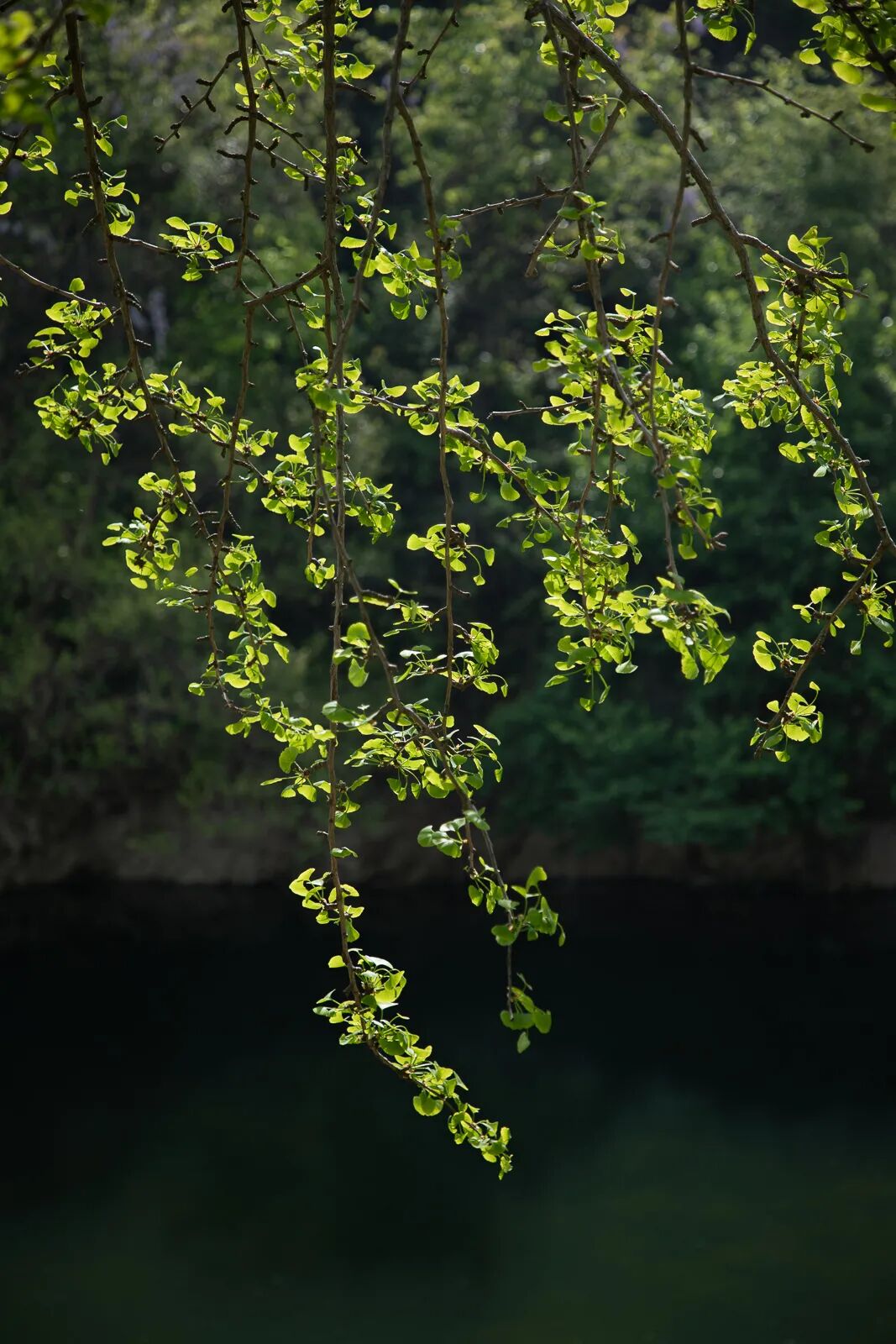 倒映着树影的