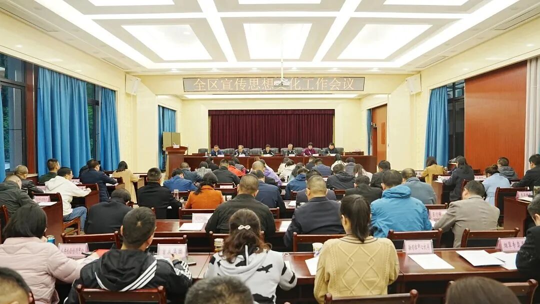 要坚持不懈用习近平新时代中国特色社会主义思想凝心铸魂,持续把学习宣传贯彻党的二十大精神引向深入,紧紧围绕区委、区政府中心工作,在培根铸魂上展现新担当,在守正创新上实现新作为,在明德修身上焕发新风貌,推动全区宣传思想文化工作再上新台阶,为加快“四区”建设,实现经济社会发展质效走在全省前列目标作出新的更大贡献。