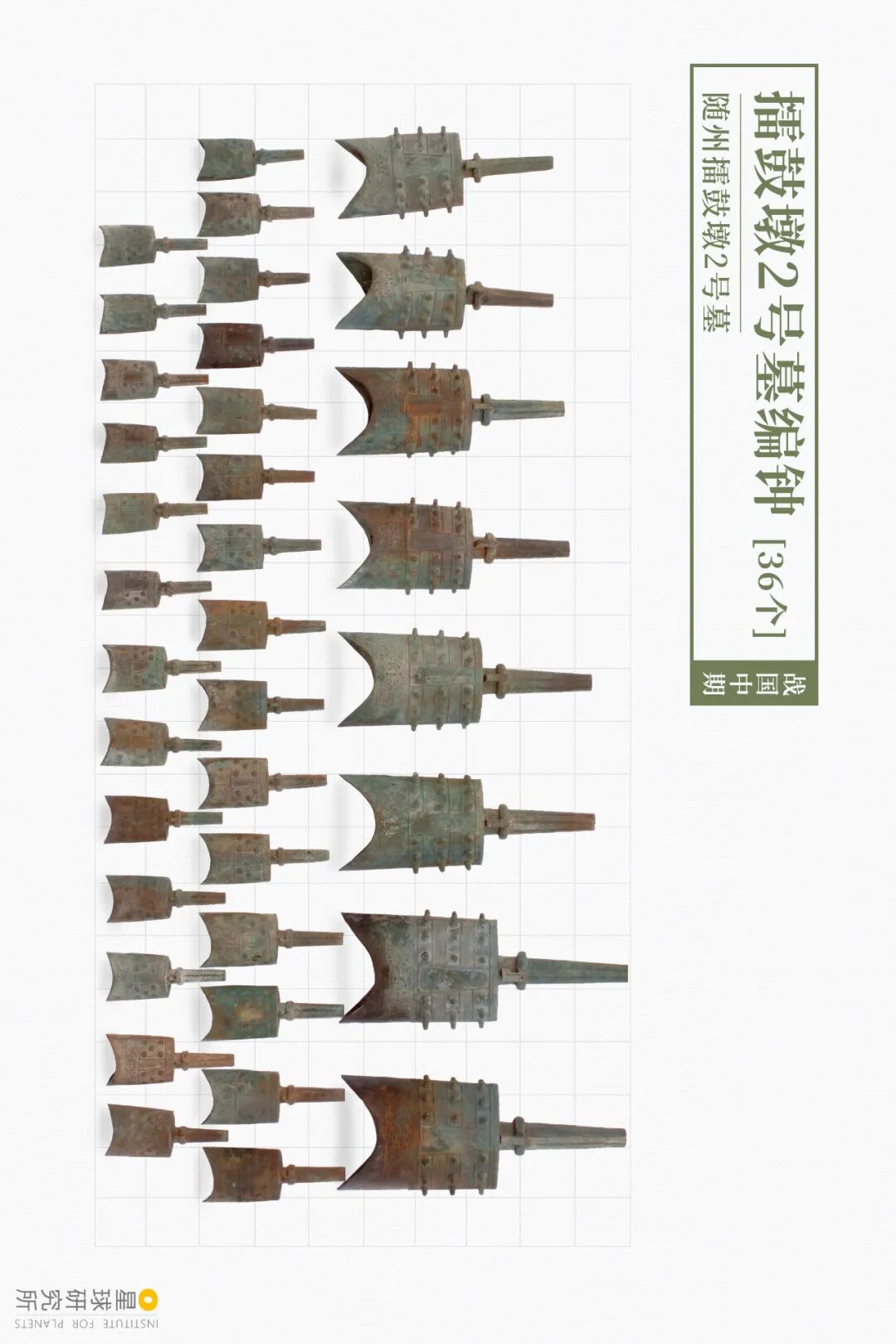 从出土文物看,编钟几乎成为曾侯家族陪葬的“标配”,也昭示着曾国有着制作大型编钟的文化传统。近年来发掘曾国贵族墓地发现青铜礼乐器近600件,其中不同组合的编钟竟有上百件之多,包括曾公求编钟34件、曾侯宝编钟被盗后尚存15件、曾侯得编钟20件、曾侯宝夫人芈加编钟被盗后尚存19件。