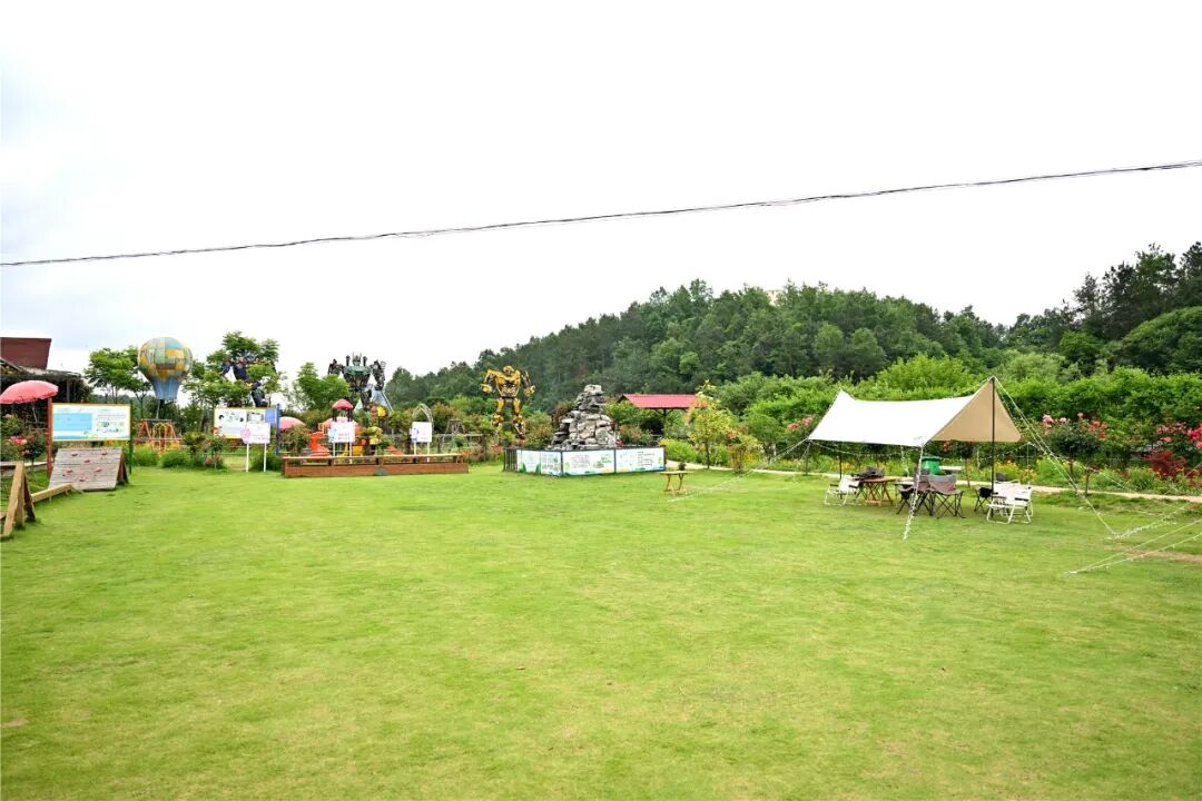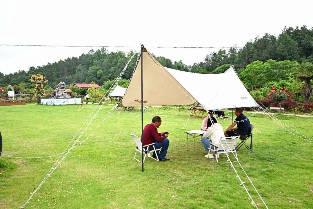 在一片绿草地上,搭建好的天幕,是年轻游客的首选,听音乐、闲聊、看着孩子们在草地上玩耍……轻松又自在。