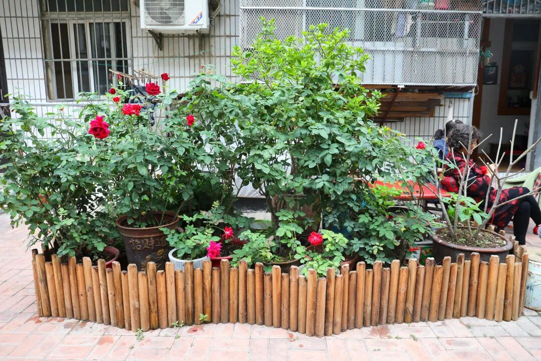 第一批改造试点定在社区1、10、17、24栋的门前区域,由社区出资购买篱笆及固定支架,社区工作人员和居民一起动手,因地制宜地将花围成长方形、圆形、㮋圆形等各种形状。
