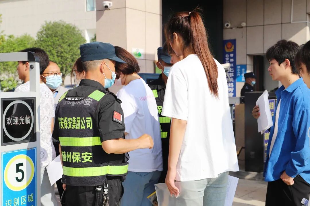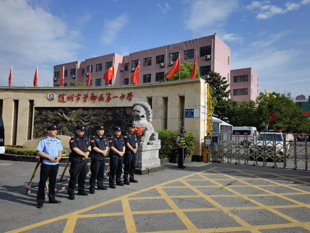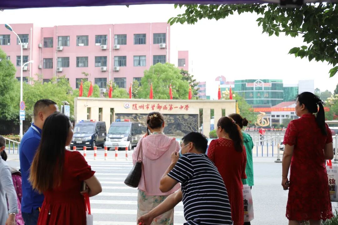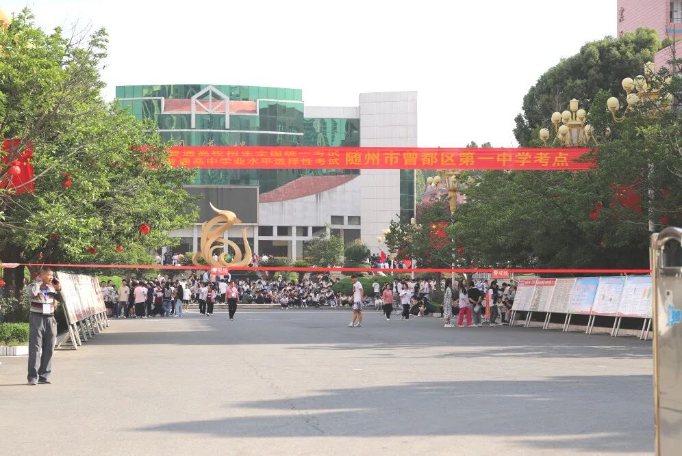 在曾都一中考点大门外