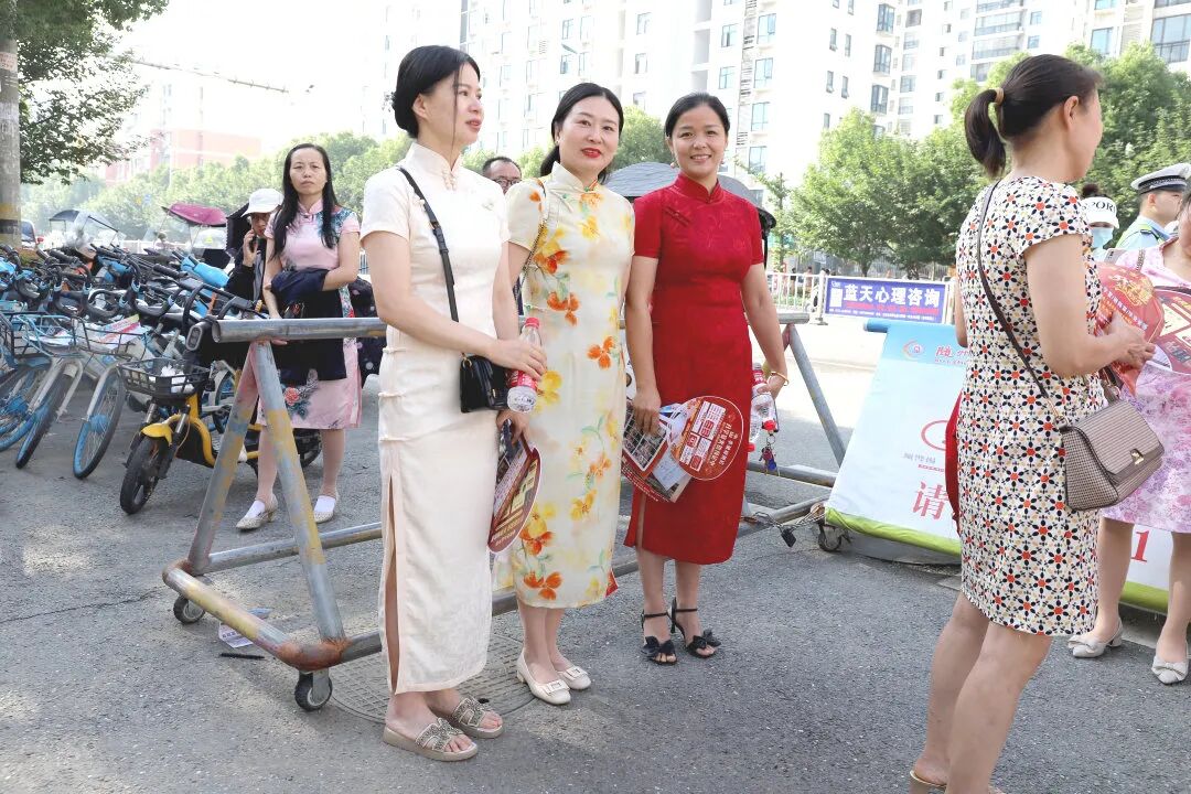 一些家长身穿旗袍、红装