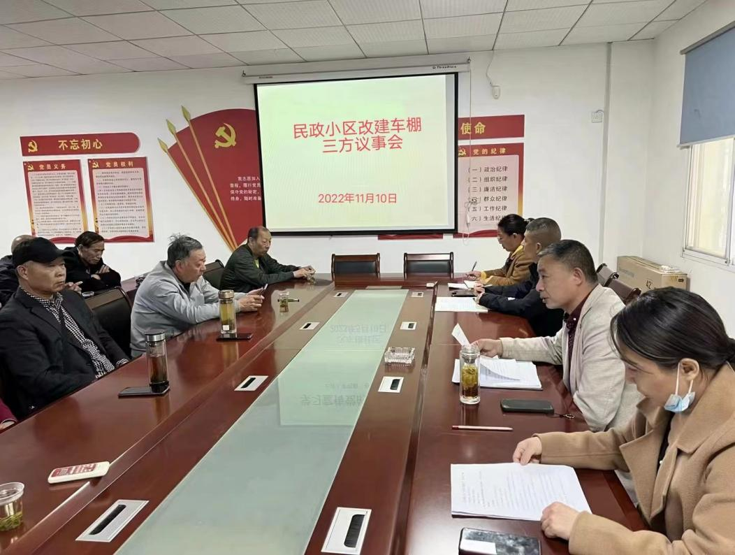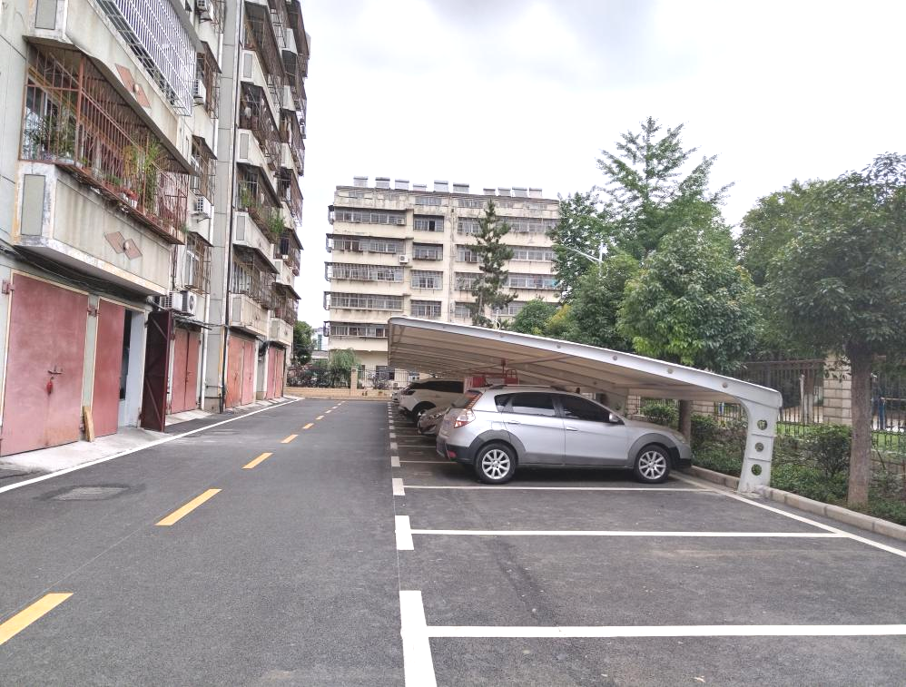 社区党委牵头召开小区“三方联动”议事会,经小区党支部、业委会、楼栋长、居民代表反复探讨商议,决定在小区内“众筹”资金在闲置车位上增设车棚,每户一个车位,由居民平摊费用。小区内居民楼前后分别装上了固定停车棚,耗资11万,每家出资4500元,总面积约达300平方米。