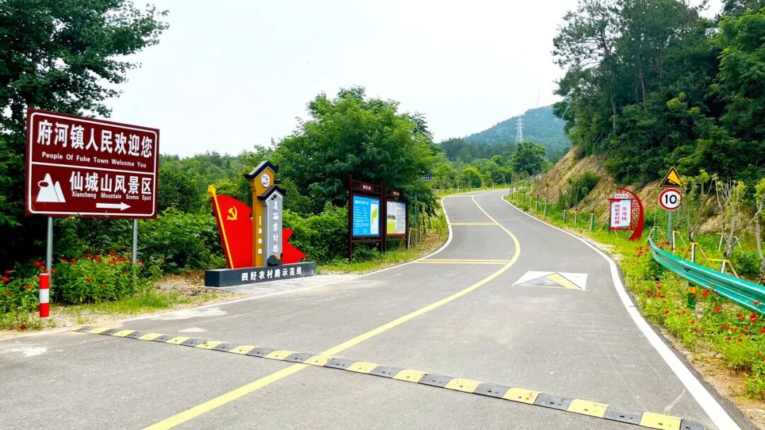 初夏时节,来到府河镇仙城山旅游公路,黑色的路面、黄白的标线、温馨的候车亭与路旁的乡村风景,一幅宜居宜业宜游的美丽乡村图景铺展开来。