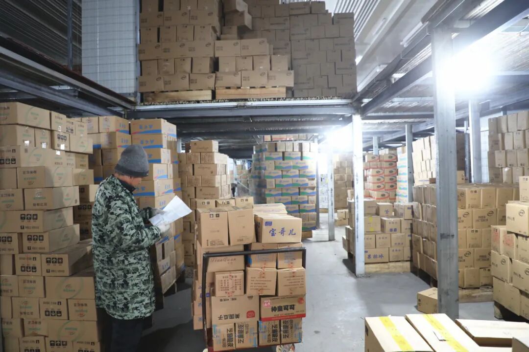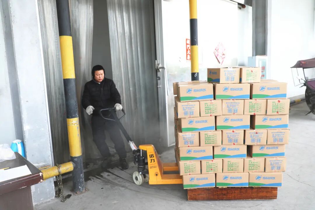搬运工在冷库中熟练将一箱箱冷冻物品按类别有序摆放,记录货物入库、出库。