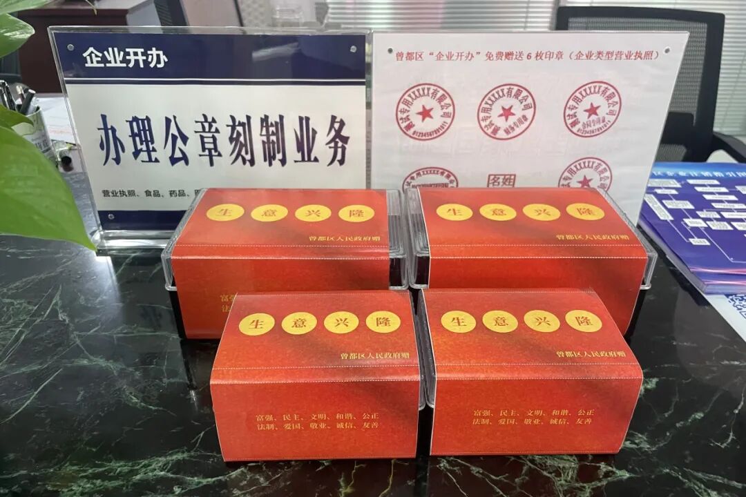 为进一步优化曾都区营商环境,提高企业开办效率,降低制度性交易成本,曾都区实施新开办企业首套印章免费刻制六枚服务,在原有五枚公章的基础上进行了升级,新增了一枚业务章,进一步实现企业开办“零成本”,激发市场主体活力,助力曾都经济高质量发展。