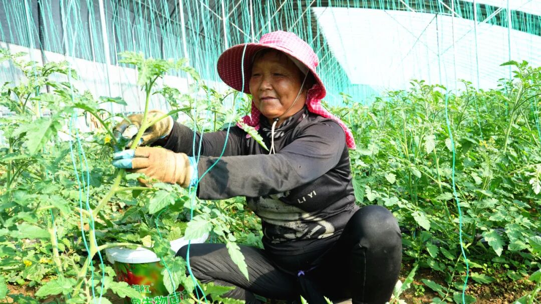 目前,每天有10余名村民在此务工,今年预计将支付劳务费近30万元。棚内,10余名村民正忙着整枝,村民姜道清今年65岁,她说,“干的都是手上活,每天工钱100元,一个月下来也有两千多元收入。”