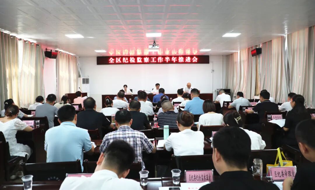 会上,传达省、市纪委半年推进会会议精神,通报2023年上半年全区纪检监察机关(机构)监督检查审查调查情况和信访举报工作情况。
