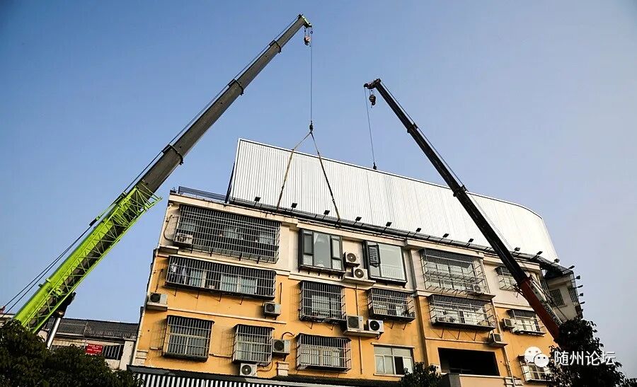 11月28日凌晨,4台大型吊机开进随州城区青年路大桥西端擂鼓墩平安小区南楼外侧,在这里开启城区2023年度一次性拆除楼顶最大体量广告牌行动。