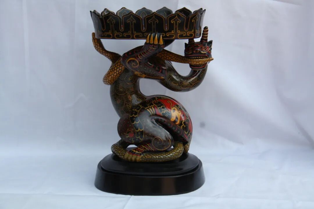 产品以祖传的传统手工艺纻麻布为原料,以生漆(国漆)为粘剂,经过逐层裱褙、髹漆、推光等几十道工序精心制作而成。色泽鲜亮、形象逼真、造型典雅、质地圆润、纹饰丰富,具有浓厚的楚文化风格和随州地方特色,具有重要的艺术和收藏价值,也是往来馈赠之佳品。自2008年起,他们制作的“彩漆龙凤纹漆盘”、“曾侯乙盖豆”、“龙蛇座花瓣盘漆豆”,在各级各届旅游商品大赛上,夺得金奖和银奖,成为湖北省唯一获奖产品。