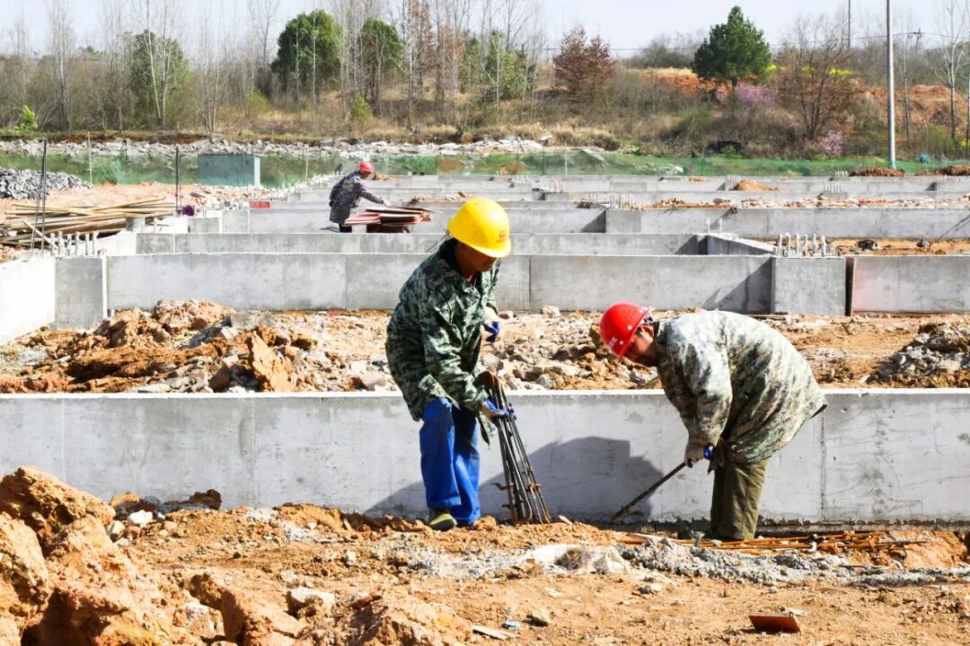 3月19日,走进北郊街道九间屋村湖北云飞汽车科技有限公司项目建设现场,塔吊林立,机器轰鸣,工程车辆来往穿梭,工人有条不紊地进行主厂房的基座浇筑作业。