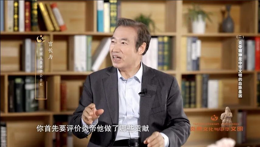 宫长为:要讲炎帝精神我想很重要一点,你首先要评价炎帝他做了哪些贡献,我觉得有两点,一个就是说他在人类的社会生产上,他在农耕文明上,奠定一个农耕文明的基础,他在农业上创造了耒耜,工具改进,应该说有创新精神,所以这是他在人类的社会生产做出重大贡献,因为古代社会农耕文明,农业是最基本,最重要的基础,再一个是从人类社会生产上看,炎帝做了哪些贡献,我觉得很重要一点,我们讲炎帝尝百草,这个医学贡献是关系到我们人类,自身生产(繁衍)问题,所以炎帝这个贡献,是非常了不起的,没有了中医,应该说就没了我们,是不是,所以炎帝在中医上这方面做的贡献,我们就说他是尝百草,甚至说讲(传说)故事讲的话,尝百草最后都昏迷了,他这种奉献精神,他这两方面的贡献,带来的两种精神,一个就是我们说的创新精神,一个可以讲是奉献精神,所以这两种精神,给中华民族整个,历史长河当中,包括后来黄帝也好,是尧舜禹汤文武周公也好,一直传承下来,比如说大禹大公无私,也传承了炎帝精神,黄帝后来开创新国家,那也是传承炎帝精神。