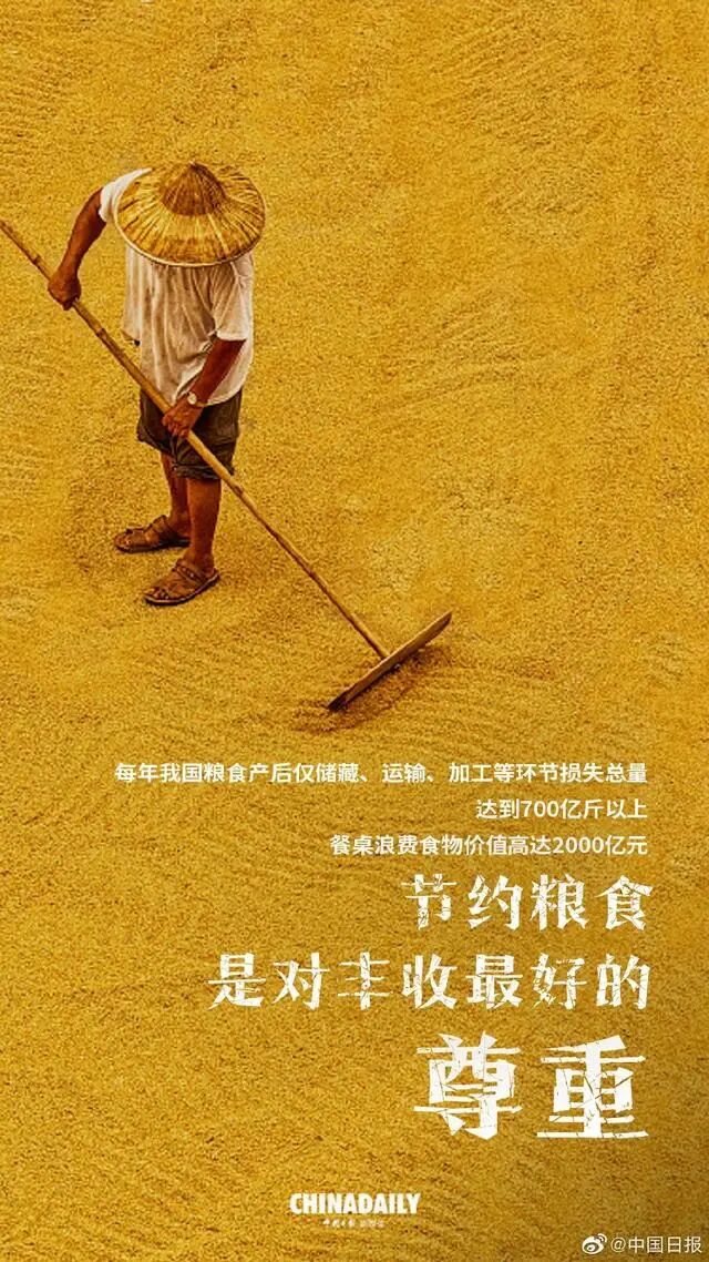 尊重劳动、勤俭节约是中华民族的传统美德,但每年,我国粮食产后损失浪费达700亿斤以上,餐桌浪费食物价值达2000亿元以上,令人痛心。