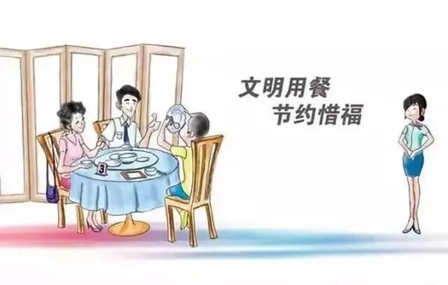 文明用餐,遵守公共道德规范自觉排队用餐,不在餐饮场所肆意喧哗,不在禁烟场所吸烟,拒绝随地吐痰等不文明陋习,不劝酒不酗酒,开车不喝酒,酒后不驾车,尽量少用一次性筷子,使用公筷公勺。