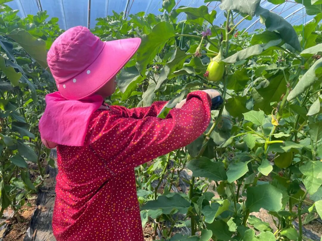 在农技专家的指导下,基地建立起标准化种植体系。通过一体化灌溉、生物防虫等绿色技术,青茄亩产可达8000斤,较露天种植提升近3倍。眼下正值丰收季,每天有近万斤青茄发往周边商超和批发市场,因品相佳、口感好,产品供不应求。