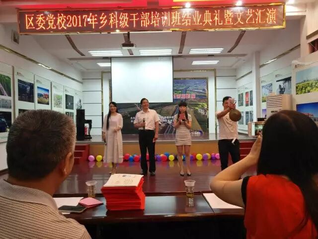 5月25日,区委党校2017年乡科级干部培训班举行结业典礼暨文艺汇演,学员们载歌载舞,用精彩纷呈的文艺节目表达结业的喜悦。