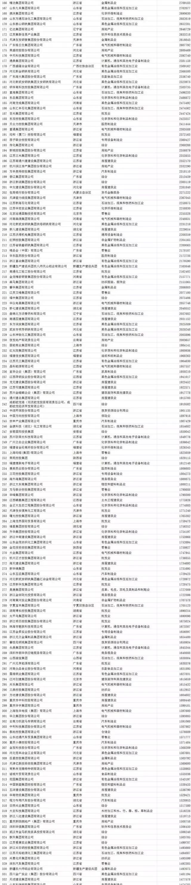 在去年的榜单中,华为、苏宁分别以2881.97亿元、2829.42亿元列第二、三名。山东魏桥、正威国际、沙钢集团、大连万达、华信能源、恒力集团、吉利控股进入前十。