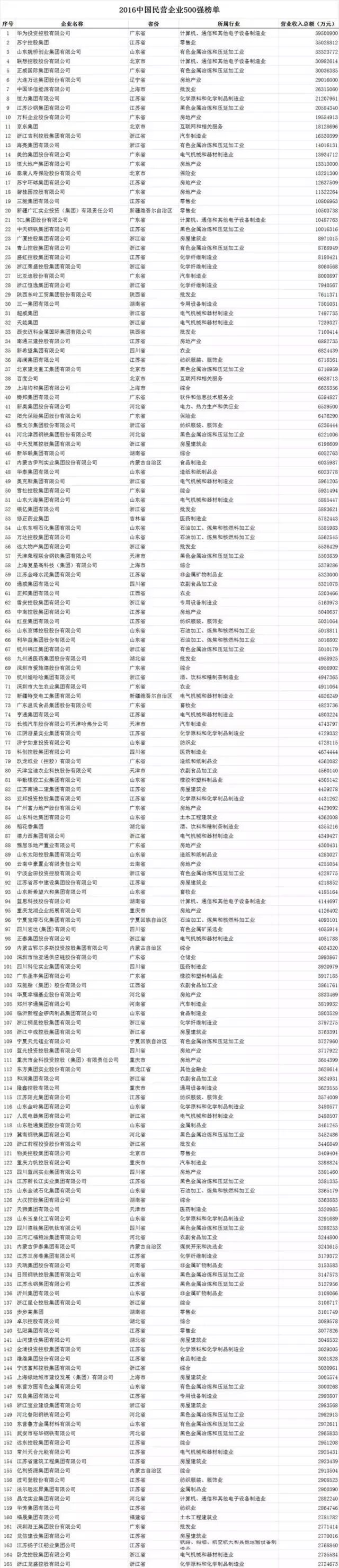 其中,华为投资控股有限公司以3950.09亿元的年营业收入成为500强榜首。苏宁控股集团、山东魏桥创业集团有限公司以3502.88元、3332.38亿元,分获亚军、季军席位。去年的冠军——联想控股股份有限公司,则以3098.26亿元退居第四位。