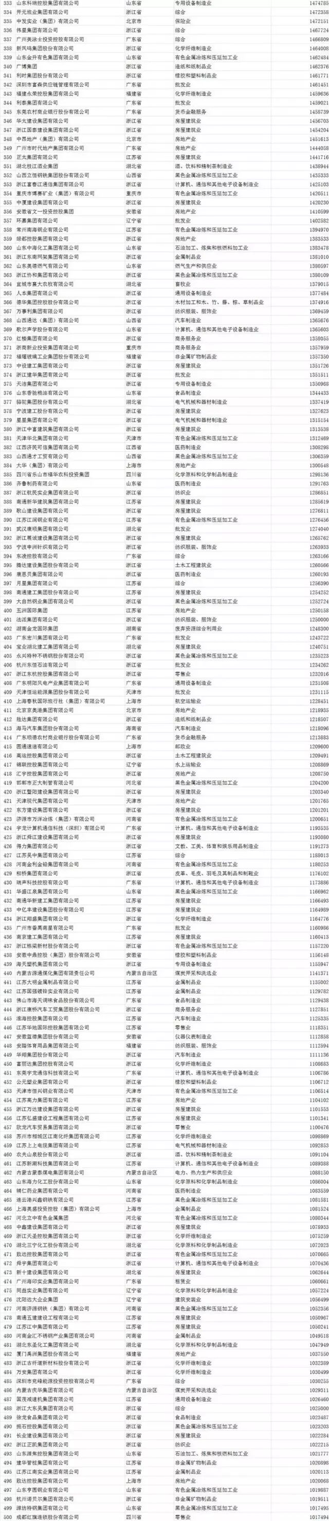 联想、正威国际、大连万达、中国华信、恒力集团、江苏沙钢、万科,分列四至十位。京东排在万科之后,美的、恒大分别排名第十四、十五。