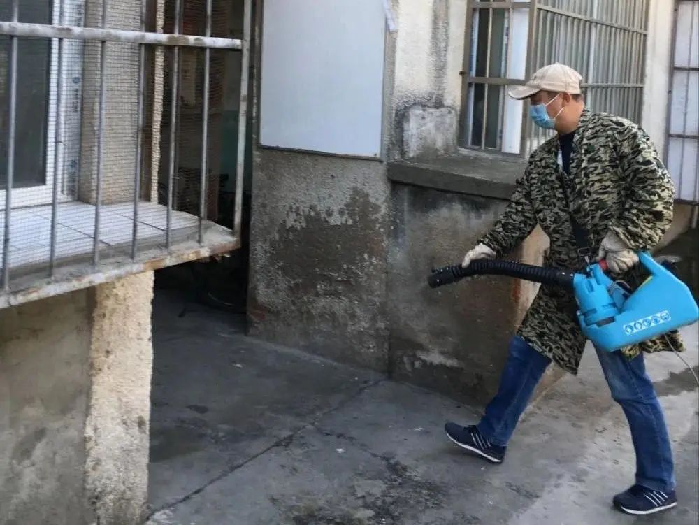 薛峻峰每天都要安排校内外的消杀灭菌工作,有时人手不够,他二话不说背起喷雾器,当起义务“防疫员”,对学校值班室、操场、住宅楼道等区域进行全面的防疫消毒。