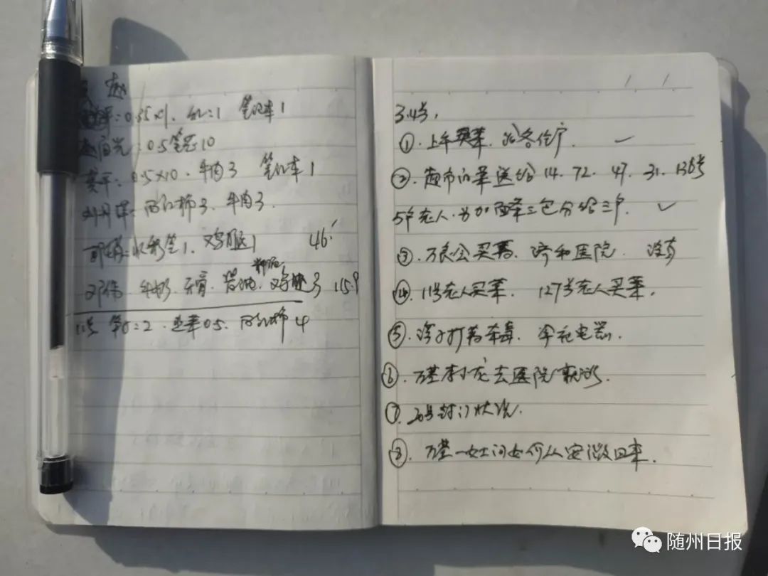 “帮邓伟代购牛奶、牙膏、酱油”“菜送至陈良军等5位老人家中”“打电话问从安徽回来的何女士情况”……一个小时的时间,她的本上就新增了14个待办事项。