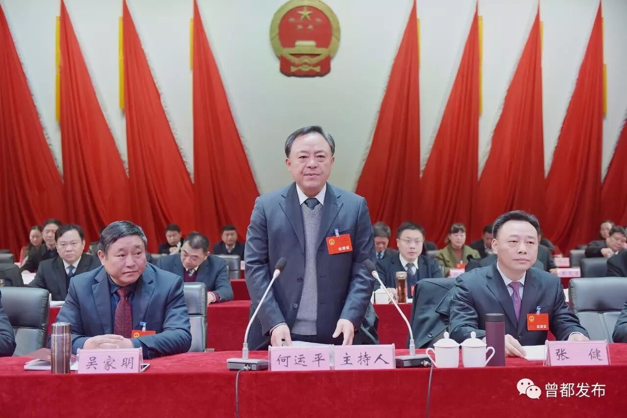 上午8时30分,何运平宣布随州市曾都区第三届人民代表大会第一次会议开幕,与会人员全体起立,雄壮的中华人民共和国国歌声在剧院内回响。
