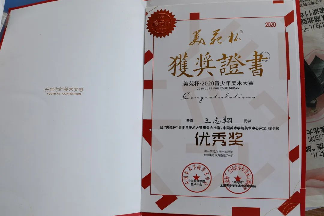 从小学二年级开始,王志翔插班到江苏省徐州市特殊教育学校,从小学到高中这11年间,优秀学生干部、入党积极分子、全国青少年美术大赛优秀奖……所获荣誉无数。