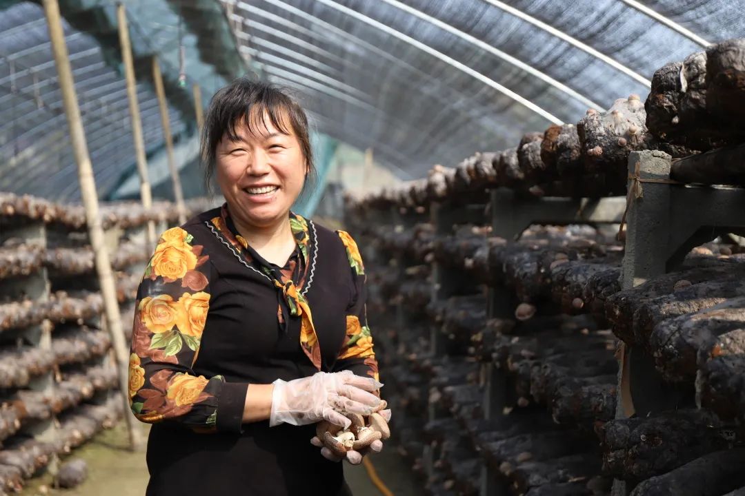 “现在正是春栽香菇的出菇期,今年又是大丰收。”一个个香菇像急流一样竞相涌入框中,该村五组村民孔春梅看着眼里喜在心里,“加入合作社后,只管种植,制菌袋、大棚、销售等等都不用操心。”