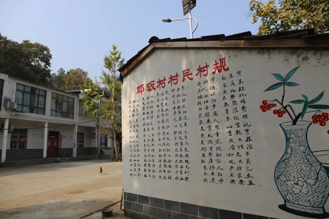 “邱畈村,是宝地,你养我,泽后辈。制民约,定村规,尊功德,守法纪。”在邱畈村一处民房净白的墙面上,书写着《邱畈村村规民约》,郭永纲介绍,通过大力推进移风易俗活动,破旧俗、树新风,进一步减轻村民负担,还开展文化体育活动,组建一支12人专业舞蹈队,新增二胡、哑铃、锣鼓、跳棋、投影仪等设备并投入使用,丰富村民休闲娱乐活动。