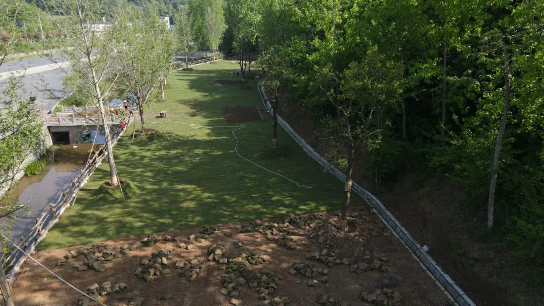 “铺设的草坪名称为百慕大,耐修剪、耐践踏、耐干旱、根系发达。”现场负责人介绍,“按照前期规划,草坪铺设完工后,计划安装8个水电桩,多顶露营帐篷。”